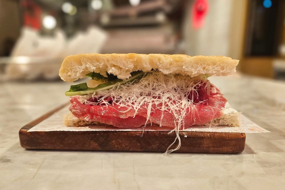 Um dos segredos do sucesso do lugar está no ótimo pão. Os sandubas são preparados na schiacciata (em italiano, “achatado”), pão típico da região da Toscana que se assemelha à focaccia — só que mais fina, macia e crocante.
