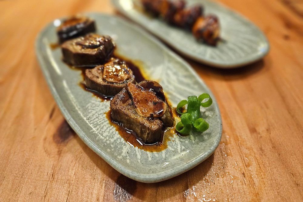 Uma das atrações do menu são 14 robatinhas oferecidas por unidade. Entre elas, se destacaram na visita realizada a de sobrecoxa de frango (19 reais) e a de filé-mignon enrolado em bacon ao molho teriyaki (29 reais). Também são grelhados no carvão ovo de codorna (15 reais), milho (19 reais) e abobrinha (15 reais).